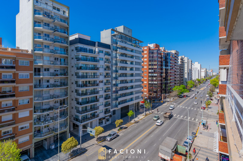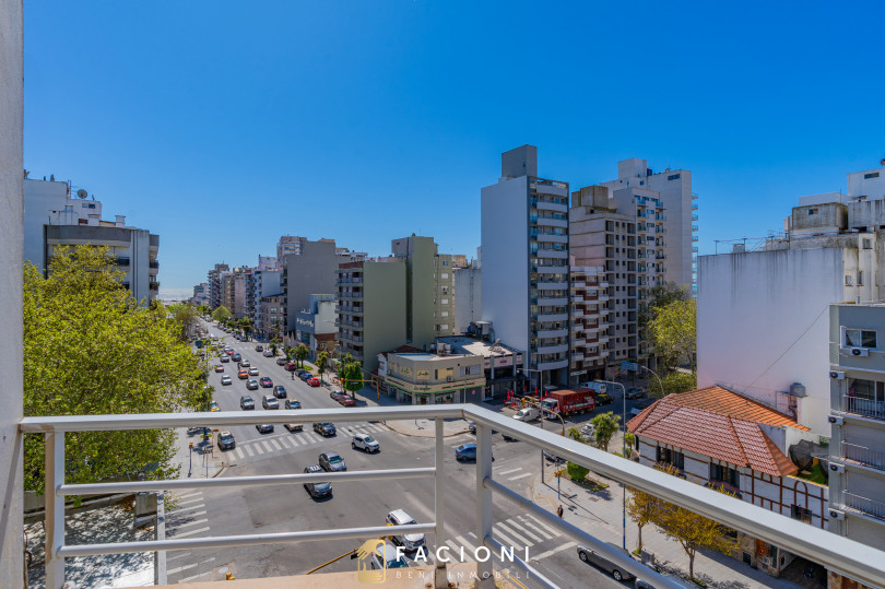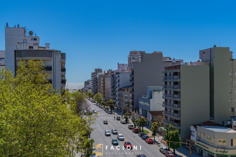 Ubicado al frente en el 6° piso, cuenta con balcón a la calle y una hermosa vista lateral al mar sobre la avenida.