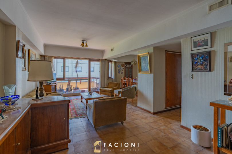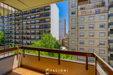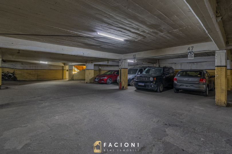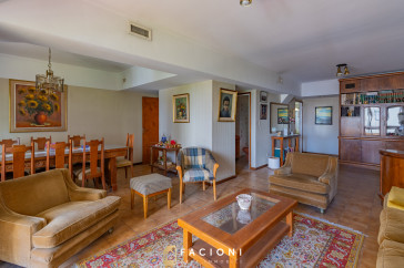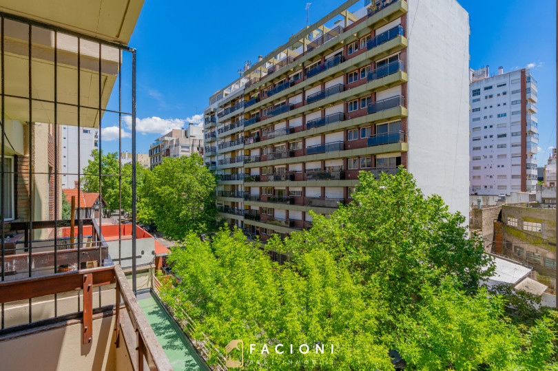 Posee 128 m² totales y cuenta con balcón al frente y cochera, un valor agregado muy solicitado en esta zona.
