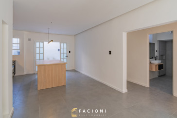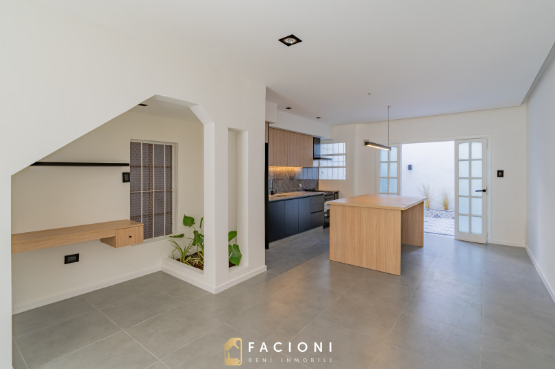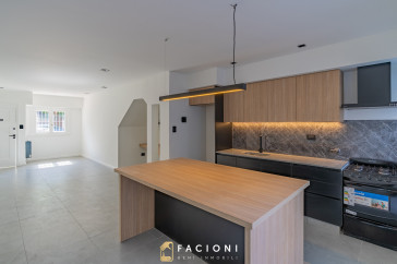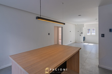 La propiedad cuenta con un amplio y luminoso living comedor, con espacio de escritorio, integrado a una moderna cocina con isla, generando un ambiente cómodo y funcional para el día a día.