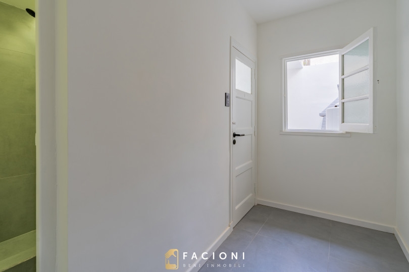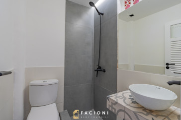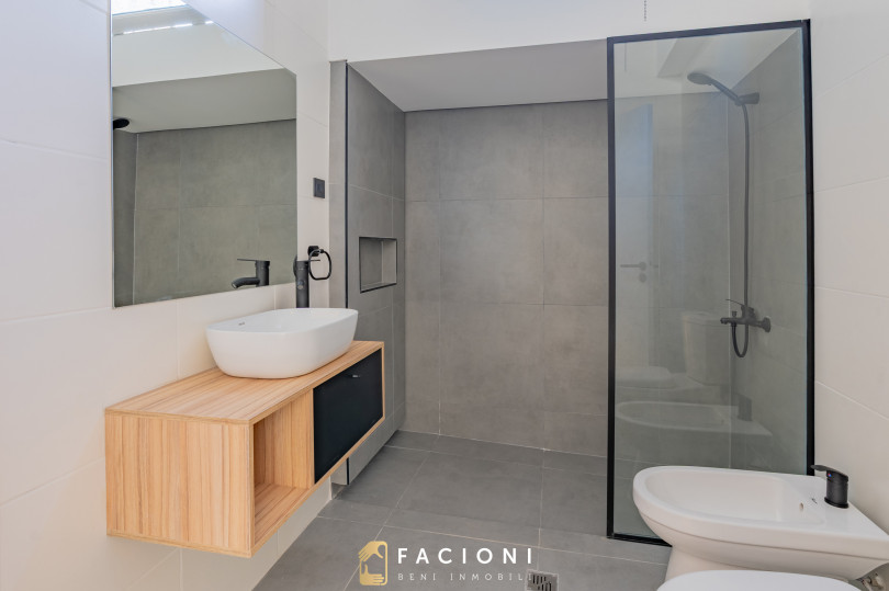 A través de un pasillo de distribución se accede a un baño completo reciclado a nuevo.