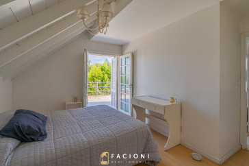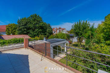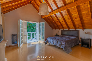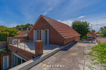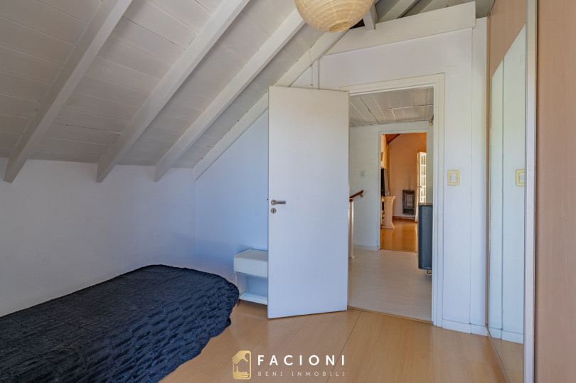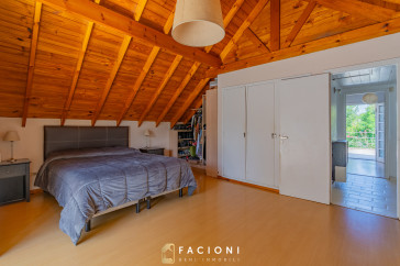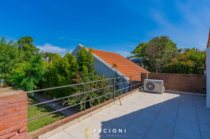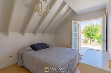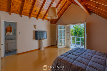 En planta alta se encuentran dos dormitorios con salida a una gran terraza, un baño completo, y el dormitorio principal en suite con salida a balcón, brindando privacidad y confort.