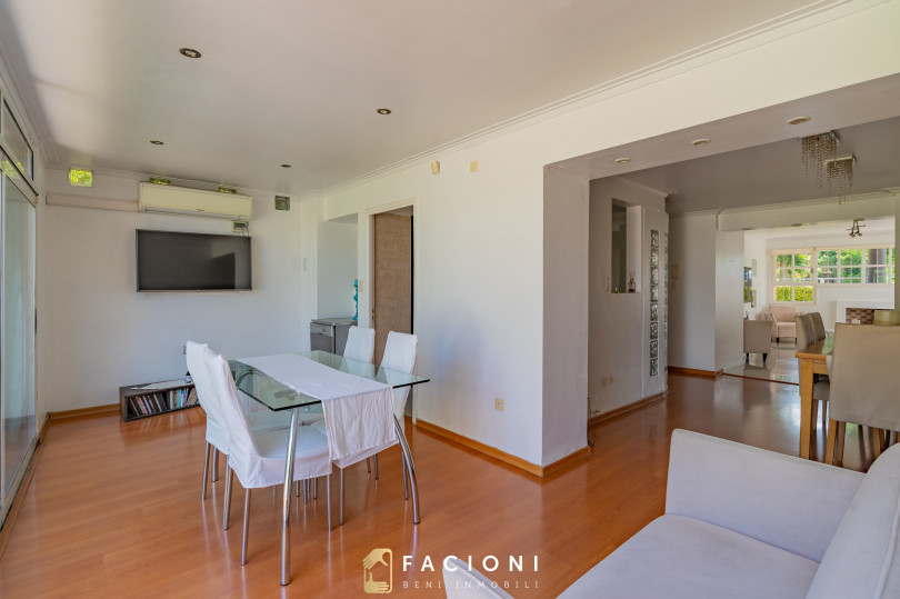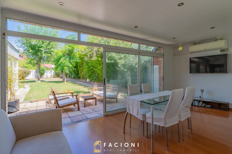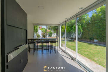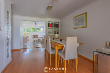 En planta baja, la propiedad cuenta con un amplio living, cocina separada con comedor diario, y un jardín de invierno o segundo comedor que aporta gran luminosidad y conexión con el exterior. Además dispone de toilette de recepción y un escritorio o dormitorio con baño completo, ideal para invitados o espacio de trabajo.