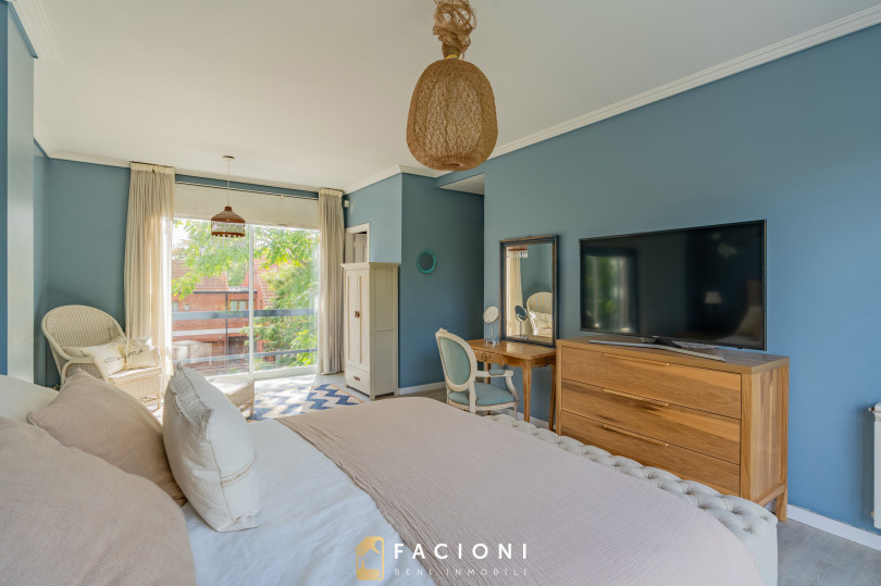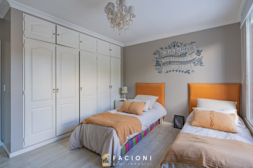 En la planta alta, la casa alberga tres dormitorios. El principal en suite con vestidor, es el refugio ideal para descansar y disfrutar de total privacidad. Los otros dos dormitorios, amplios y luminosos, comparten un baño completo. Todos los espacios están diseñados para maximizar la comodidad y la luz natural, con detalles que realzan la estética y funcionalidad de cada ambiente.